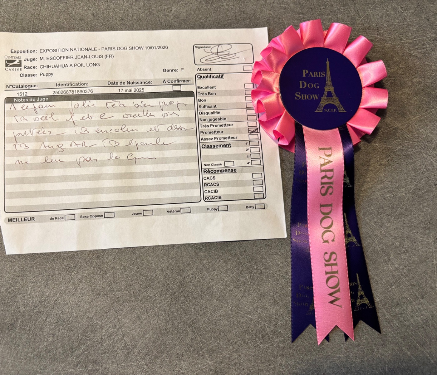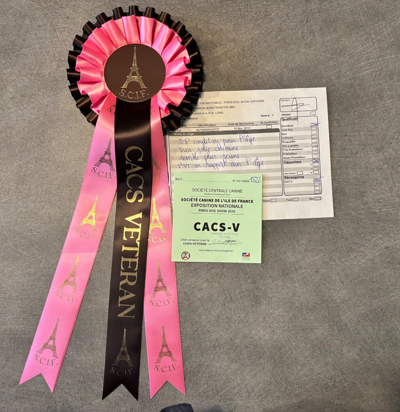 Hémie : « top condition pour l âge, très jolie chienne, semble plus jeune, mouvement en rapport avec l âge »